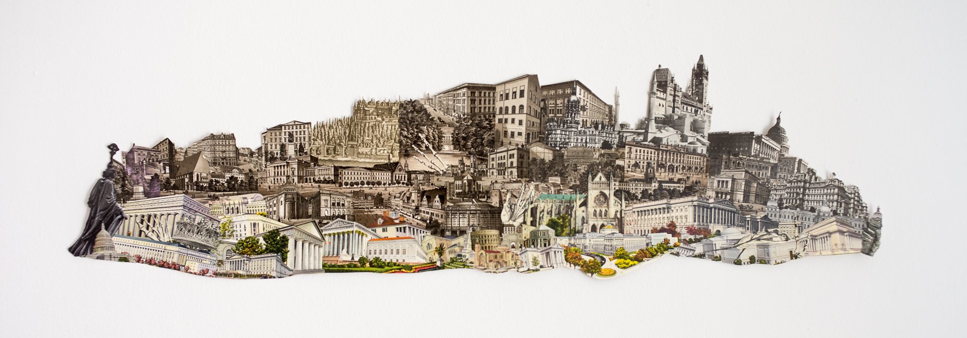 City of Aglaura, hand cut collage, 26 x 82 inch (SOLD)