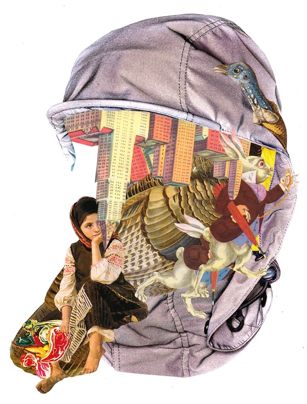 Kosmak, hand cut collage, 10 x 8 inch (SOLD)