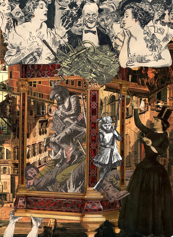 Golden Circus, hand cut collage 10.5 x 9 inch (SOLD)