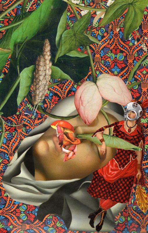 Clelia, hand cut collage, 8.7 x 9.5 inch (SOLD)