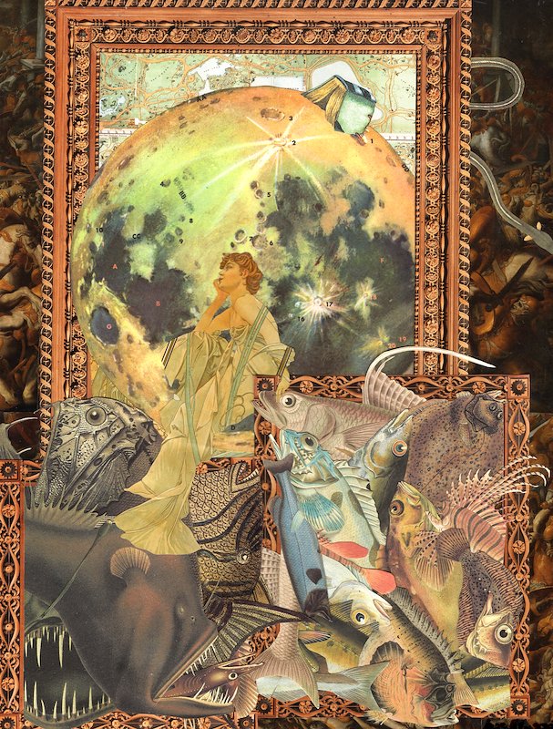 Starrglass, hand cut collage, 8.5 x 7.5 inch (SOLD)