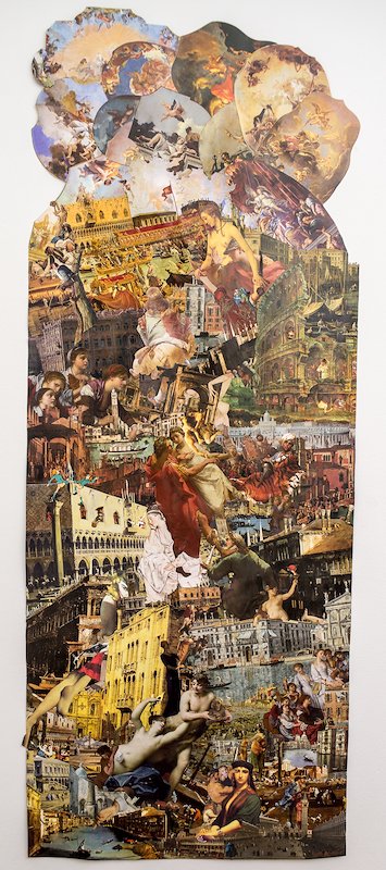The Heart of Saint Marco, hand cut and glued collage, 4.3 x 1.8 ft. (SOLD)