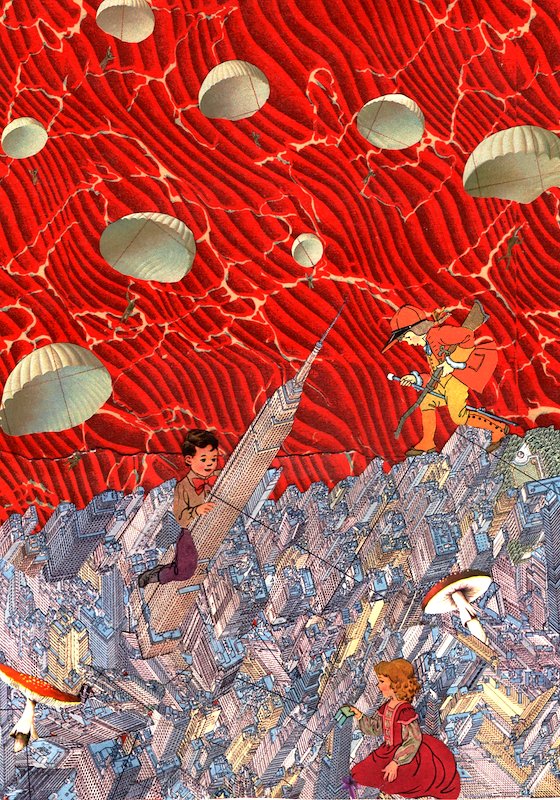 Openfire, hand cut collage, 10 x 8 inch (SOLD)