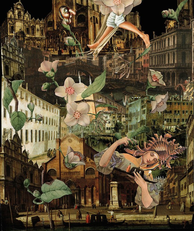 From Venice With Love, hand cut collage, 11 x 8.2 in, Venice-Italy