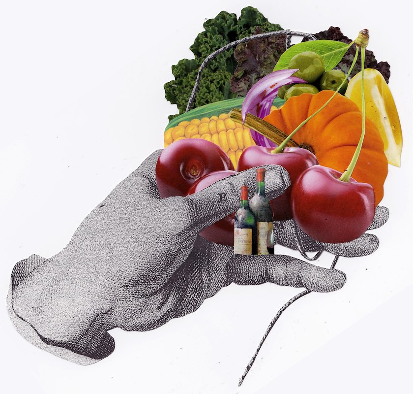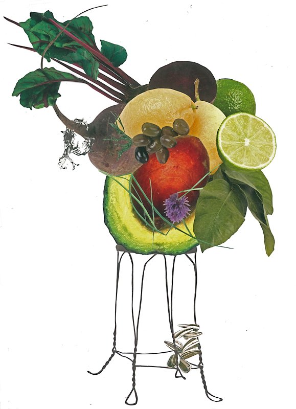 Avocado Beetroot, hand cut collage, 10 x 8 in, Venice-Italy