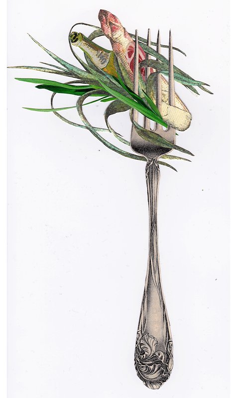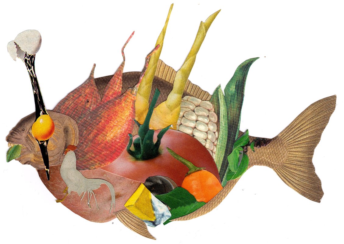 Salmonbean, hand cut collage, Brooklyn, NY