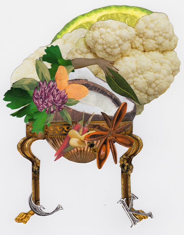 Califlowercurry, hand cut collage, 5.5 x 4.5 in, Brooklyn, NY