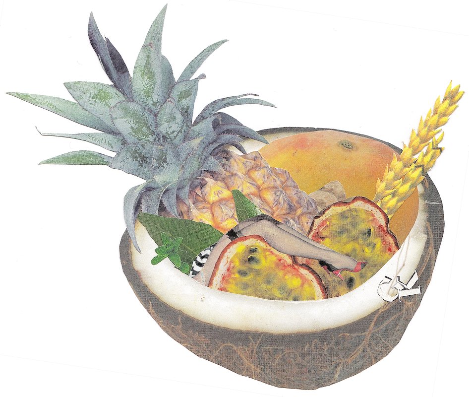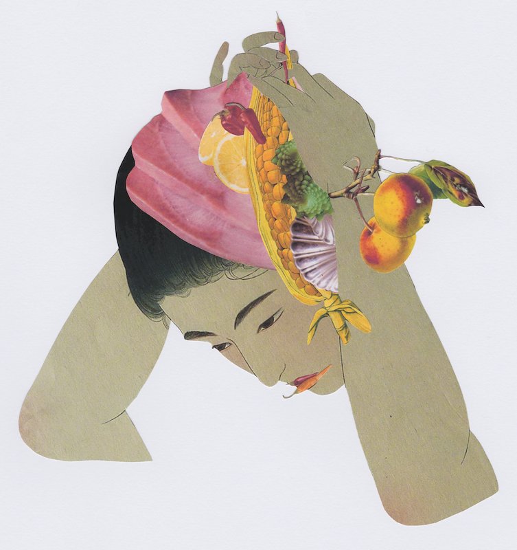 Hamachi Girl, hand cut collage, 7.5 x 6.5 in, Zundert, South Holland