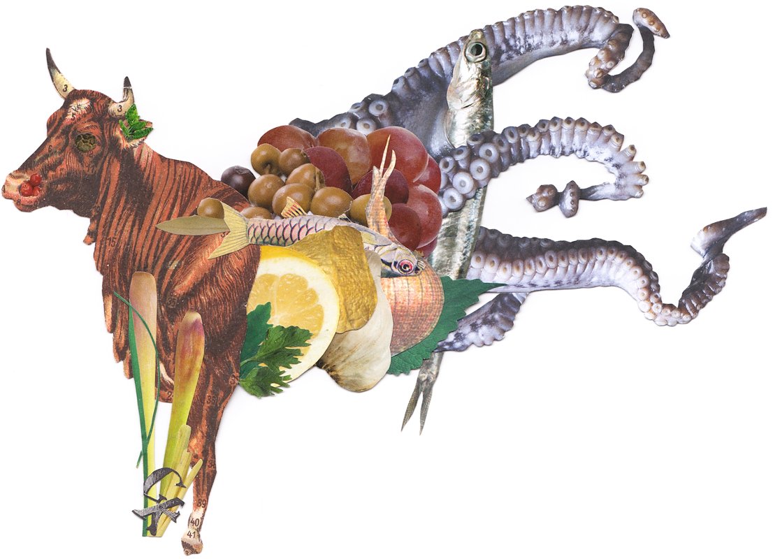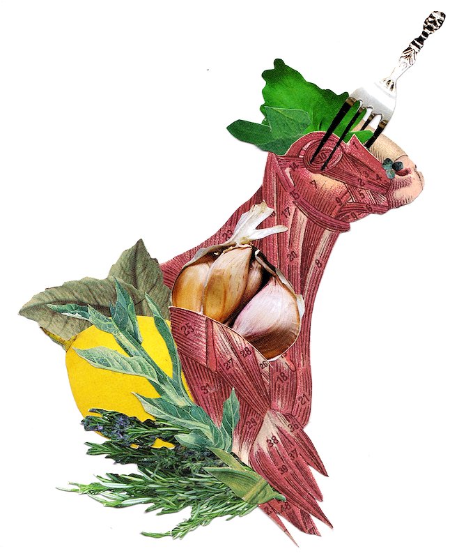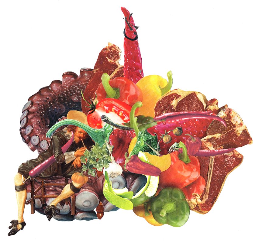 Octobeef, hand cut collage, 6.5 x 7.5 in, Copenhagen, Denmark