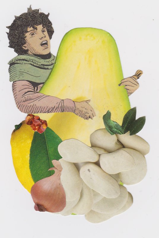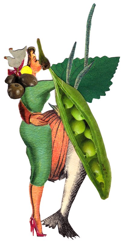 Codpeas, hand cut collage, 4 x 2 in, Brooklyn, NY