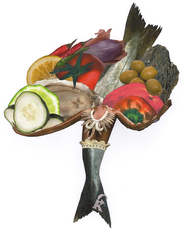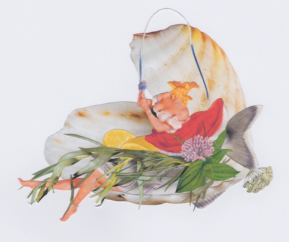 Oystercod, hand cut collage, 8 x 6 in, Brooklyn, NY