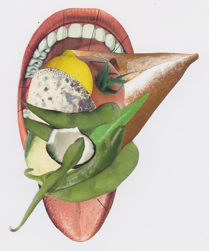 Comfortlentils, hand cut collage, 6 x 5 in, Brooklyn, NY
