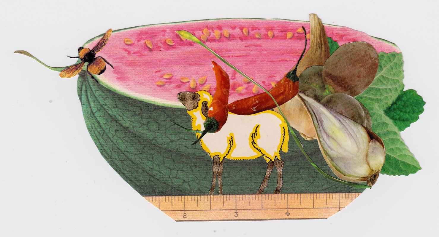 Sheepwatermelon, hand cut collage, 3 x 5.5 in, Brooklyn, NY