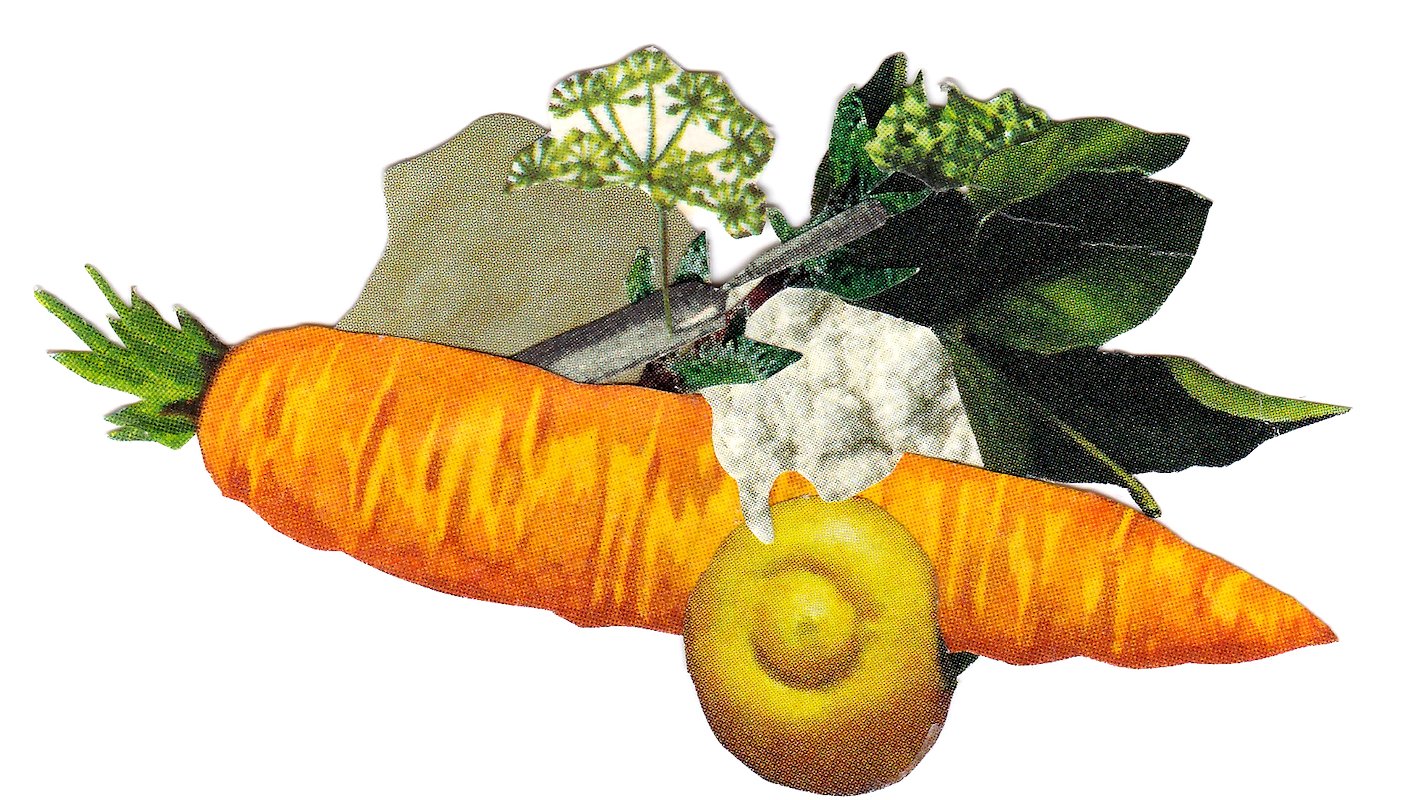 Carrotricotta, hand cut collage, 1.5 x 3 in, Brooklyn, NY