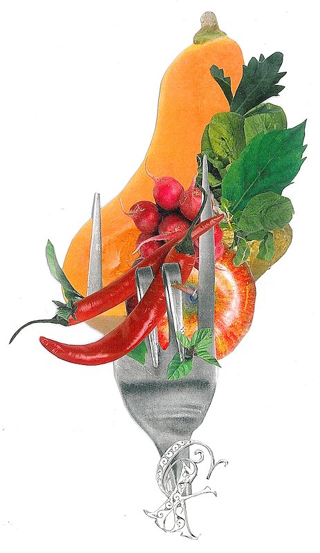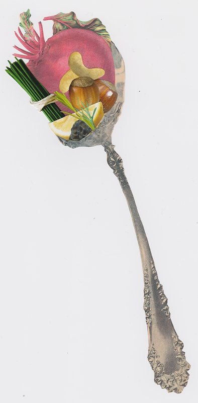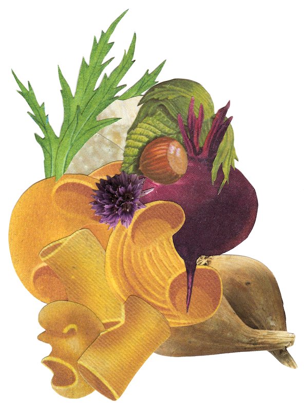 Pastabeet, hand cut collage, 4 x 3 in, Brooklyn, NY