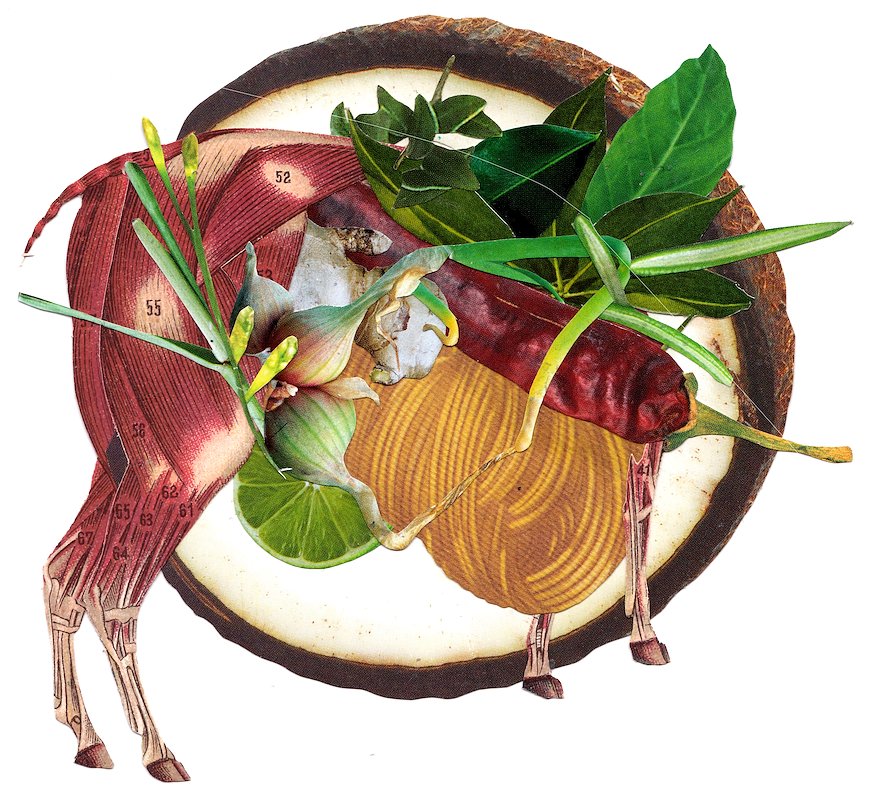 Greencurrylamb, hand cut collage, 5 x 6 in, Brooklyn, NY