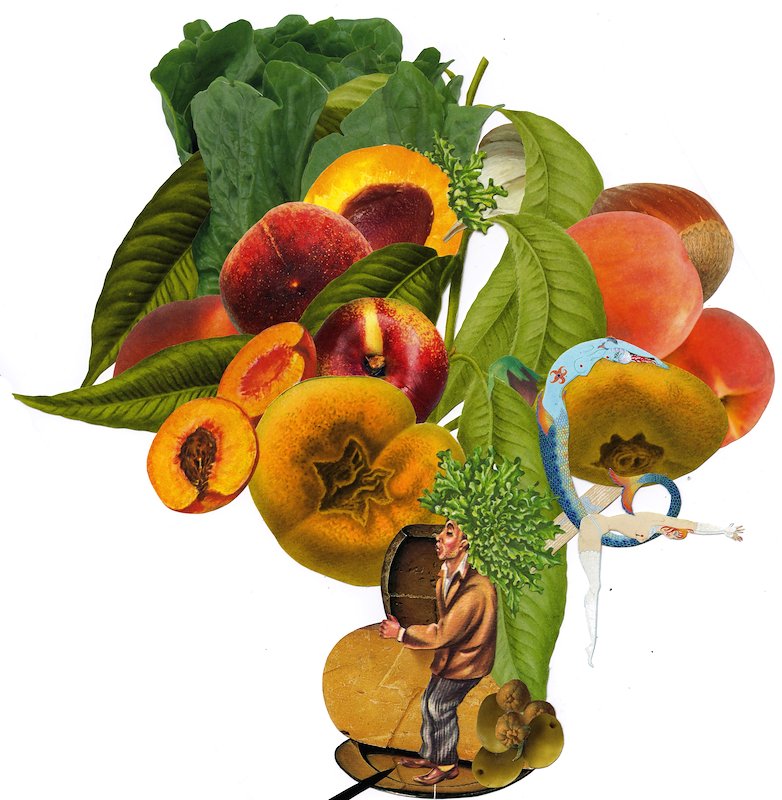 Peach Romaine Hazel, hand cut collage, 11 x 7 in, Brooklyn, NY