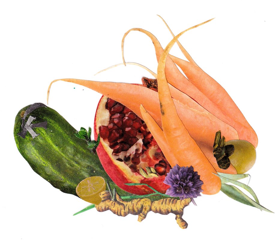 Carrotpom, hand cut collage, 3.5 x 4 in, Brooklyn, NY