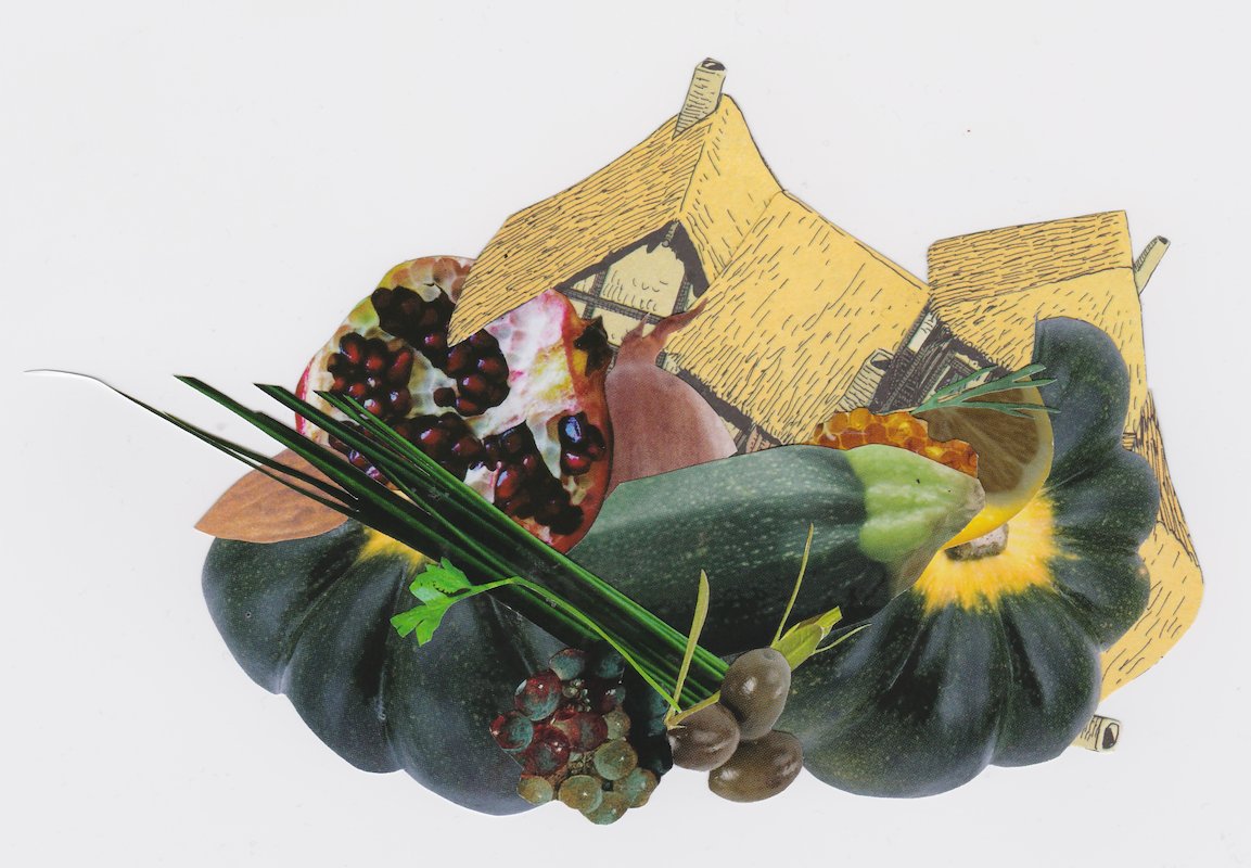 Squash, hand cut collage, 7.5 x 3.5 in, Brooklyn, NY