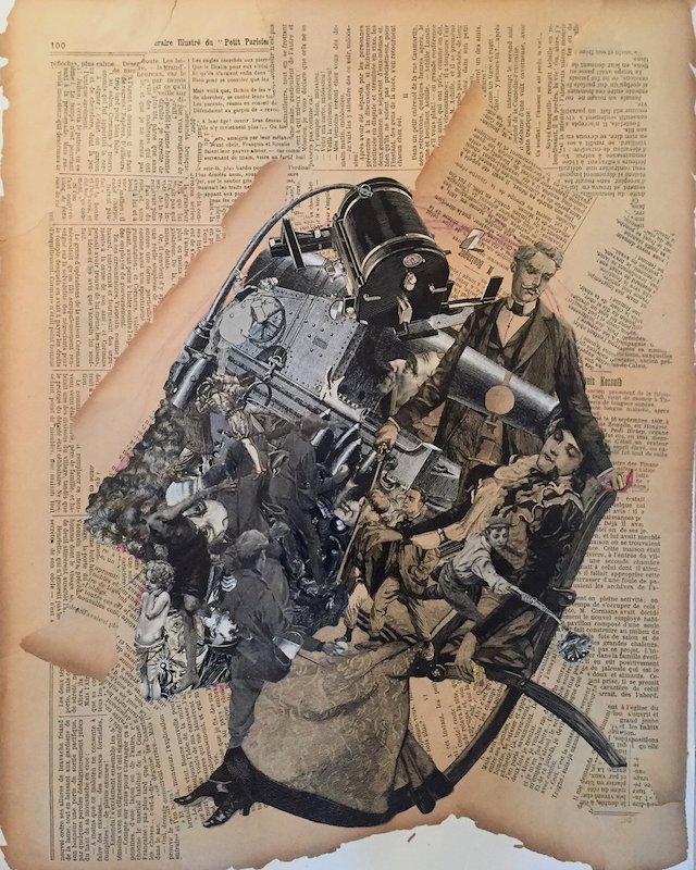 Railway to Nowhere, hand cut collage glued on paper, 2016 (SOLD)