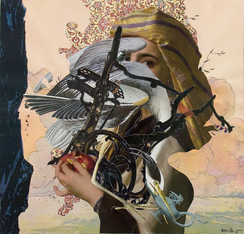 Allegue, hand cut collage glued on paper, 38 x 27 cm (SOLD)